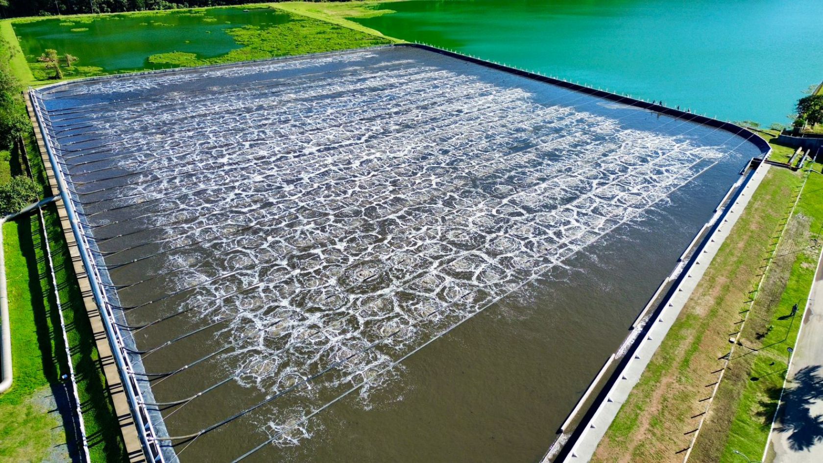 Com as 14 novas linhas instaladas, a lagoa opera com capacidade total de aeração. O sistema conta agora com 29 linhas em funcionamento. A entrada em operação das novas linhas permite a operação na lagoa sem que haja emissão de odor durante o tratamento do efluente.