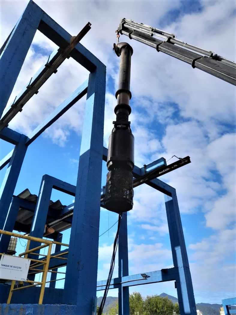 Na última semana, as bombas utilizadas para captação de água na Estação de Recalque de Água Bruta (ERAB), receberam manutenção preventiva e corretiva. A intervenção que é feita uma vez por ano, é necessária para manter a saúde do sistema de captação de água bruta e a eficiência das bombas. Como são quatro bombas, é executado uma por vez, não afetando o abastecimento.