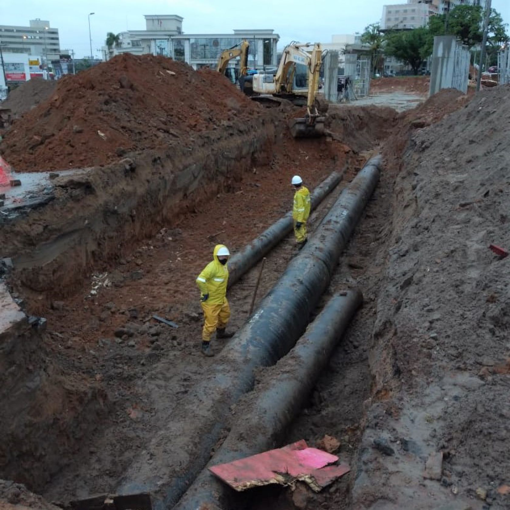 “Nesta etapa iremos assentar mais cerca de 40 metros de rede em mais um trecho na Avenida do Estado”, menciona o engenheiro Sanitarista do departamento de Manutenção de Água, Felippo Ferreira Brognoli. As redes adutoras interligam a Estação de Tratamento de Água (ETA) ao reservatório R1, que abastece a região Central da cidade. A obra consiste em executar duas novas adutoras – uma DN 400 e outra DN 700 – para substituir as existentes, que estão no trecho da pista que será rebaixada. A execução ocorre conforme os trechos são liberados pela Secretaria do Planejamento, até o assentamento total de rede e a interligação final das adutoras.
